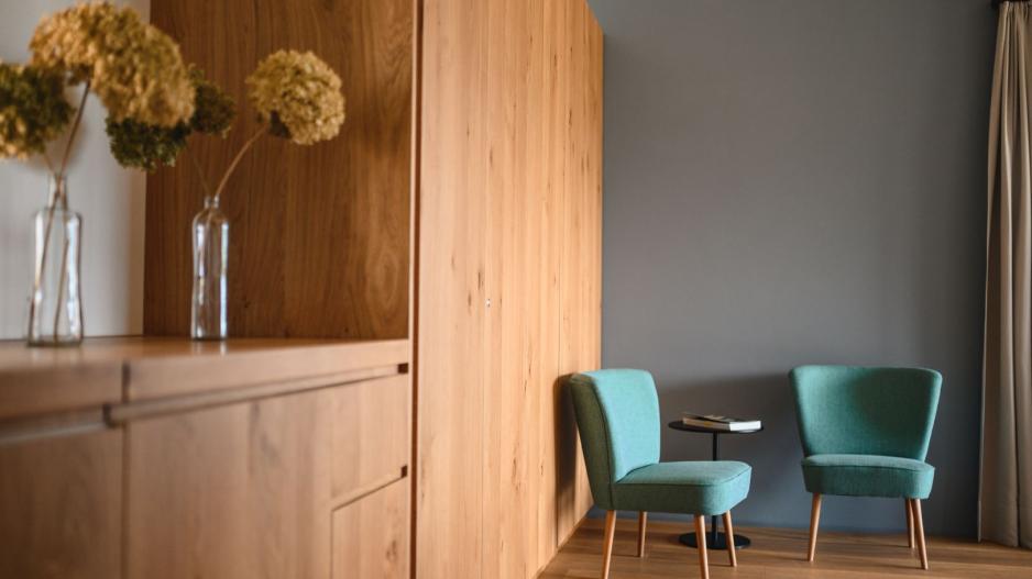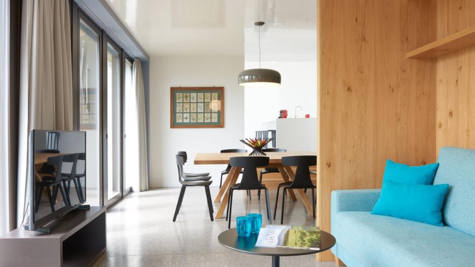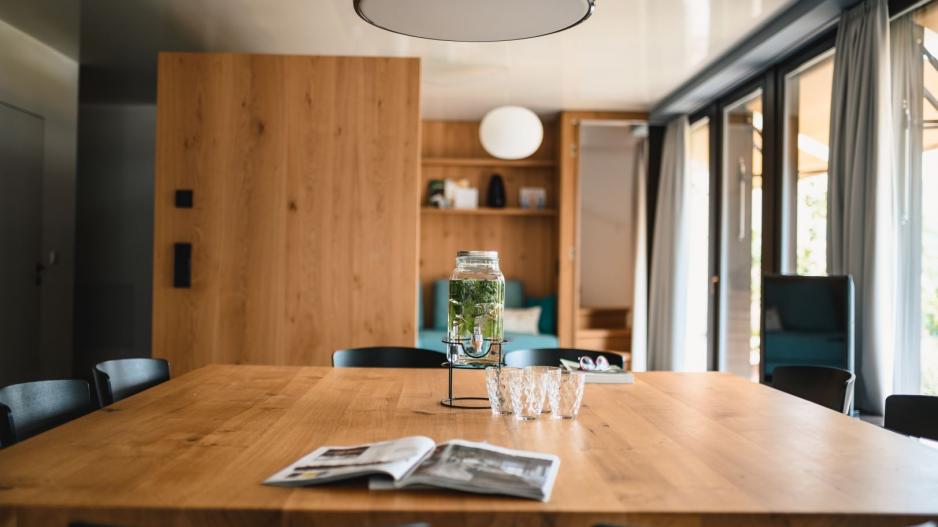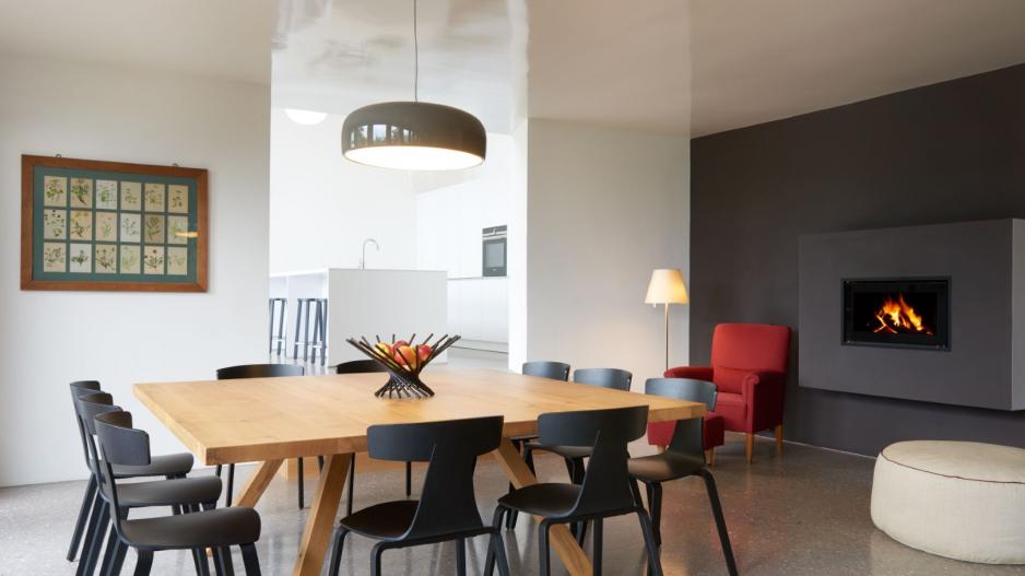 Herzstück der neu renovierten Villa ist der großzügige Ess- und Wohnbereich. Er ist sonnendurchflutet mit bequemen Sofas, großem Esstisch und heimeligen Kamin. Die angrenzende, voll ausgestattete moderne Küche mit Kochinsel verlängert sich nach außen auf eine Terrasse, die von einer vom Künstler Manfred Mayr gestalteten Pergola überdacht ist. Hier können Sie in der Sonne frühstücken, im Schatten zu Mittag und bei Sonnenuntergang zu Abend essen. Ein Schlafzimmer mit ensuite Duschbadezimmer sowie ein zusätzliches Gäste-WC liegen ebenfalls auf dieser Etage. Mehr>